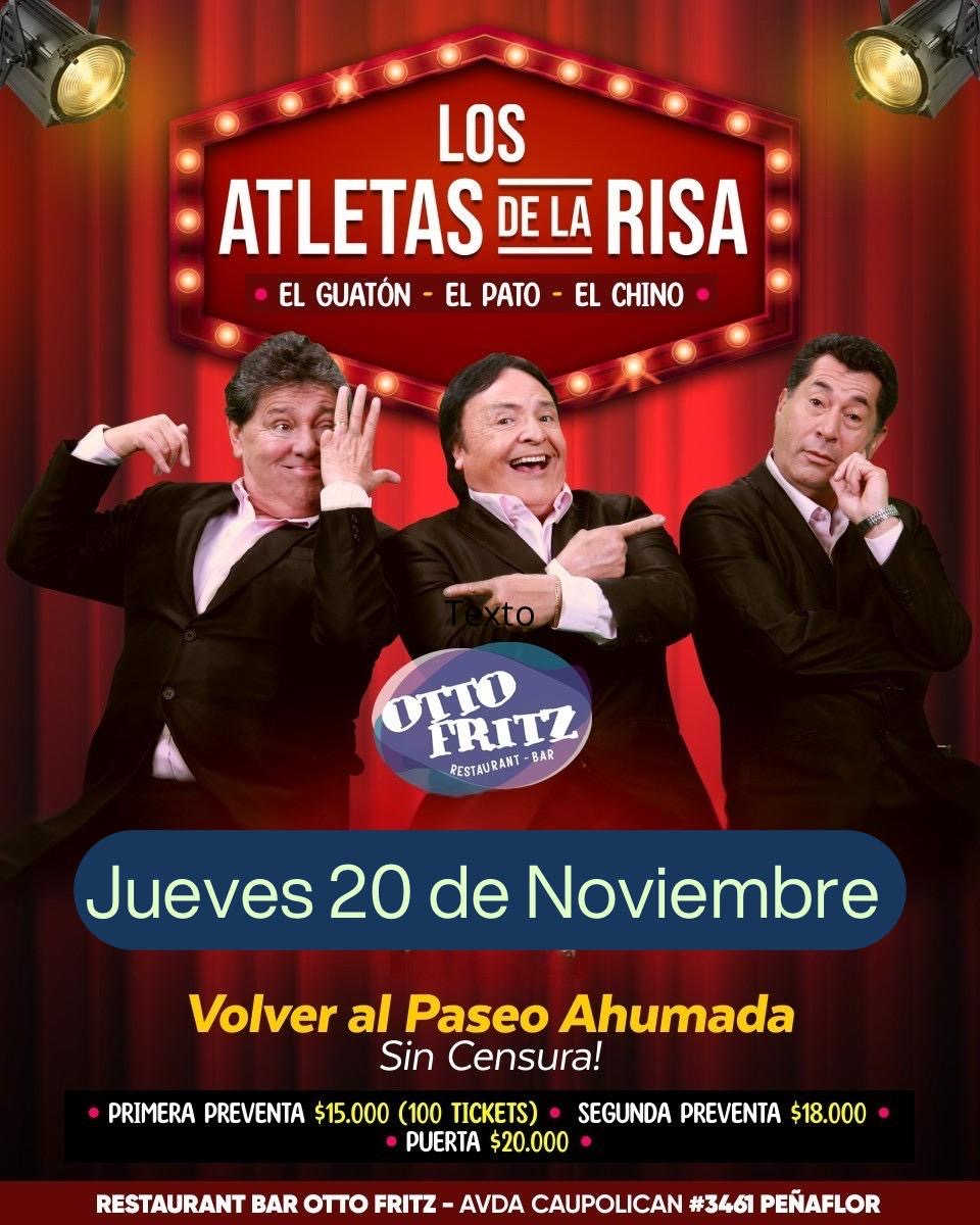Se viene… Los Atletas de la Risa con su show: Volver al paseo ahumada ¡Sin Censura!… Buffet tenedor libre, cerveza de barril, tragos internacionales, chorrillanas y mucho más..